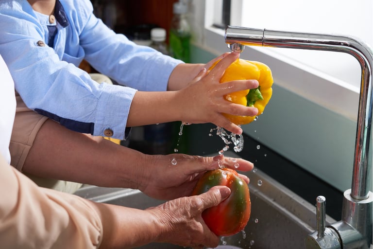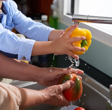 Fun Process: Turn washing produce into a fun activity with bubbles and water play.