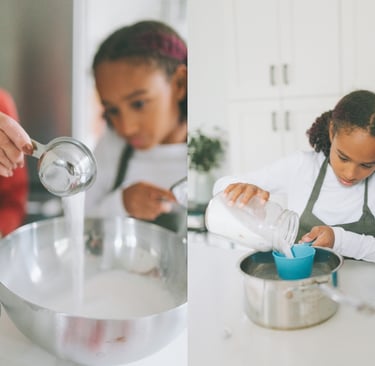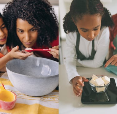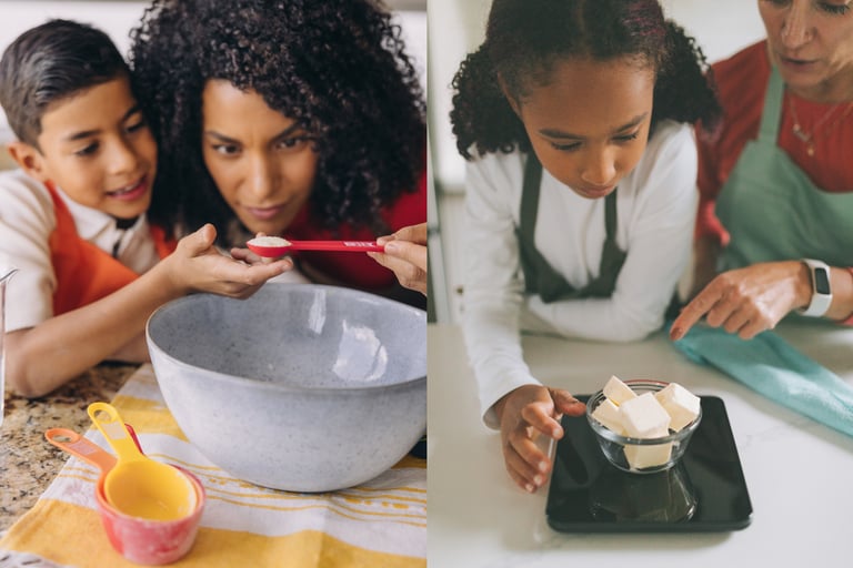 Engagement: Involve them in measuring both dry and wet ingredients.