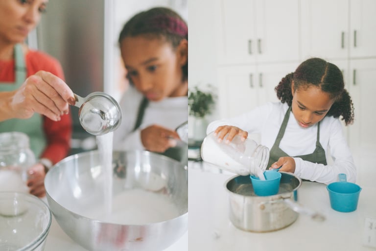Use measuring cups with clear markings to make it easier for your child to pour the correct amount.